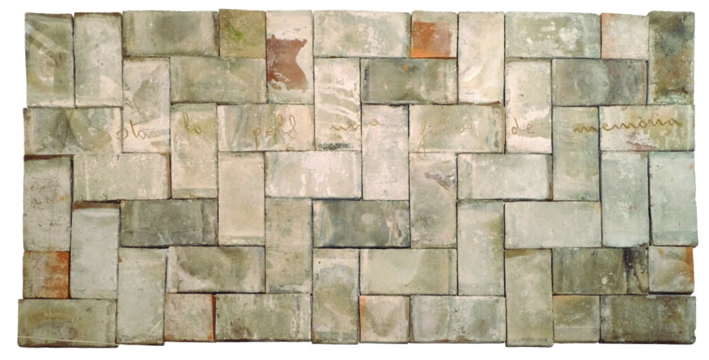 A partir d’aquest poema, l’artista ha fet la inscripció d’un fragment gravant sobre el paviment les paraules “Sota la pell, una febre de memòria”. Per fer-ho, ha utilitzat la cal·ligrafia de la seva àvia, amb la qual cosa ha establert un vincle amb la història de la seva vida a través de la lletra manuscrita i ha suplantat, en certa manera, el seu gest i les seves mans a través de les de l’artista.