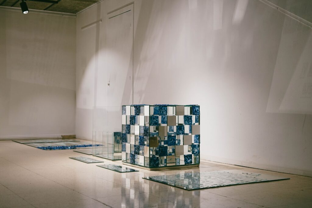 El vidre i el mirall actuen com a materials actius: per una banda, simbolitzen la delicadesa del nostre entorn, i per l’altra, capturen i imiten les imatges que els envolten i alhora impliquen l’espectador en l’obra. Aquest joc de reflexos esdevé una metàfora de la impossibilitat d’evadir el context en què vivim.