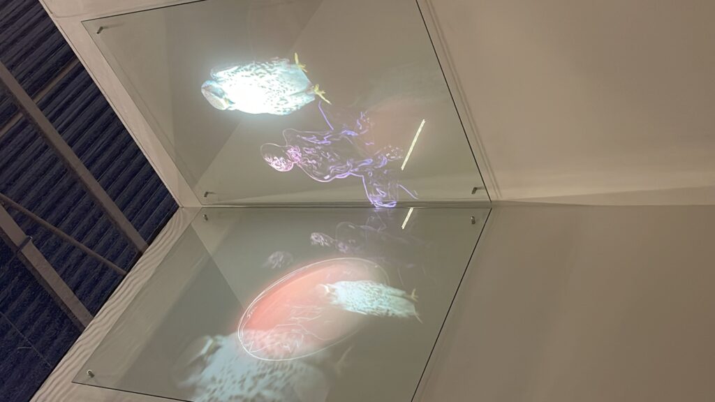 Panells de vidre amb projecci´o de vídeo: 130 x 90 x 0,8 cm – 40 kg.