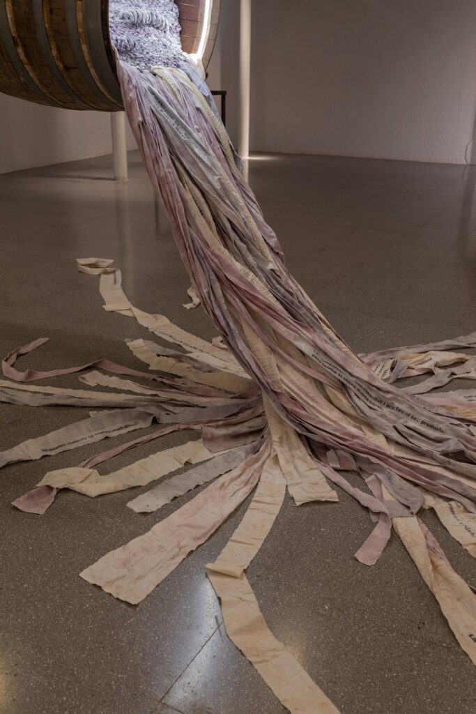 Els materials residuals del vi, que donen color a la peça fan referència al pagès i es posa el focus als elements base del vi que no es volen mostrar